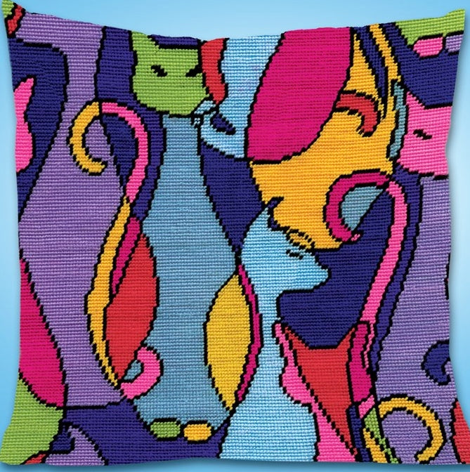 Design Works Colourful Cats Tapestry Kit is a multicolours modern Cat tapestry design worked in half cross stitch. Suitable for finishing as a small cushion, cushion panel or framed picture.